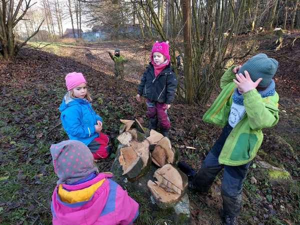 Pfarrer Grauer zu Besuch im Waldkindergarten